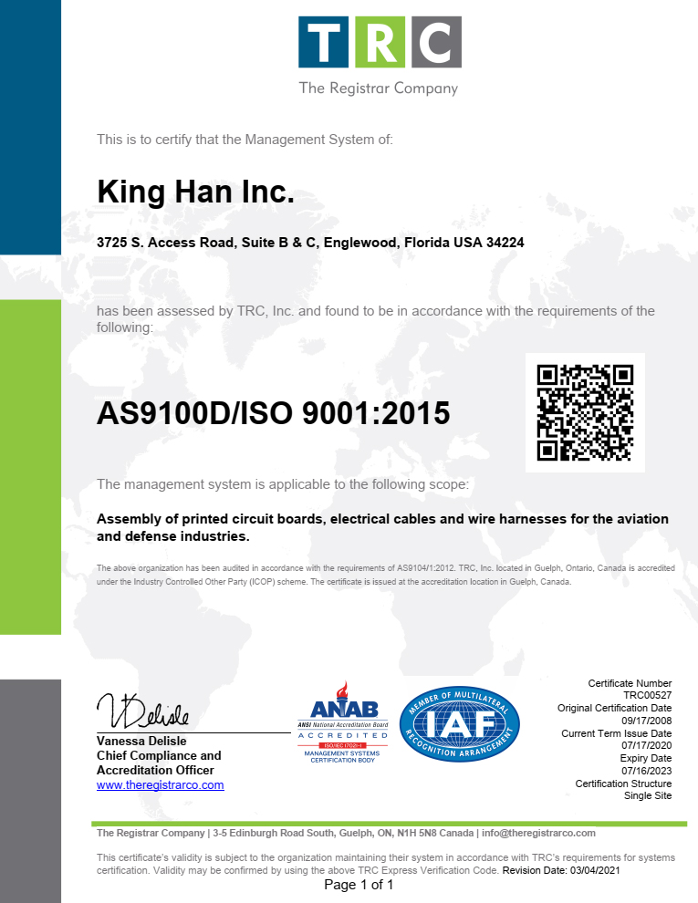 KHI is AS 9100, REV. D/ISO 9001:2015 certified.